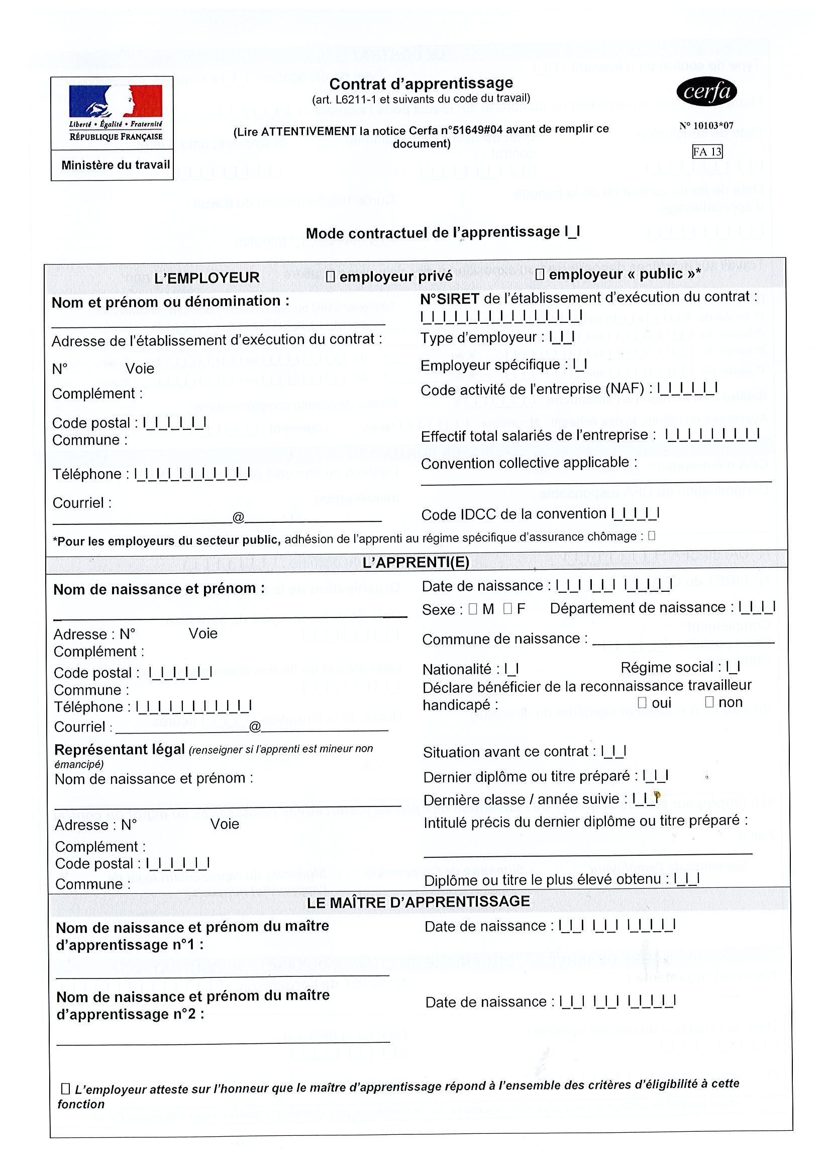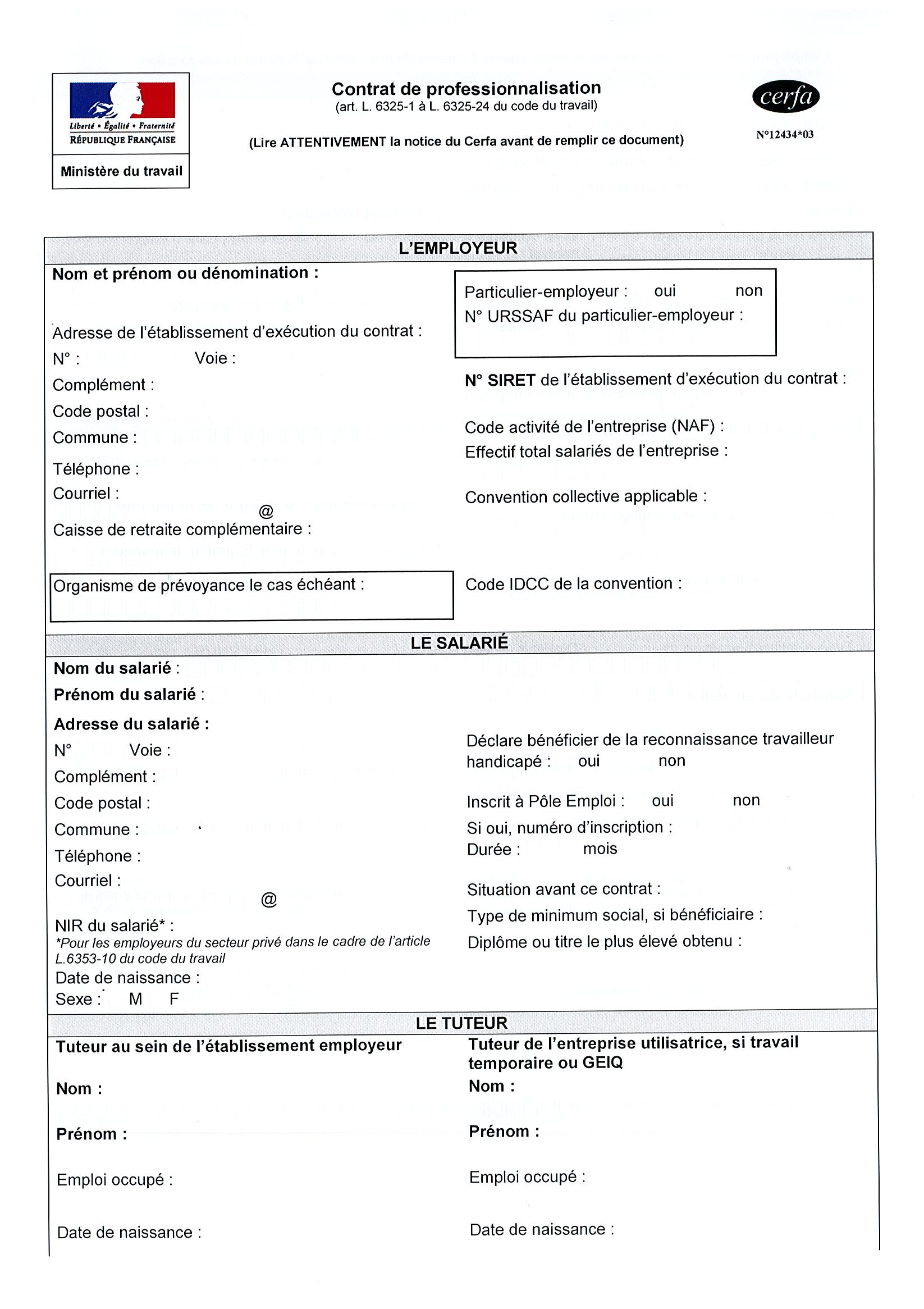 – Le Contrat de Professionnalisation ou d’apprentissage pré-rempli (3 exemplaires)
